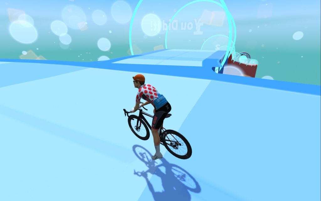 The ride is on Watopia’s Accelerate to Elevate (43.5km, 1158m), and everyone will stop for a moment of silence just past the Alpe’s 7th bend, where Michael’s memorial is written on the tarmac. Rebecca (Bex) will be there as well.