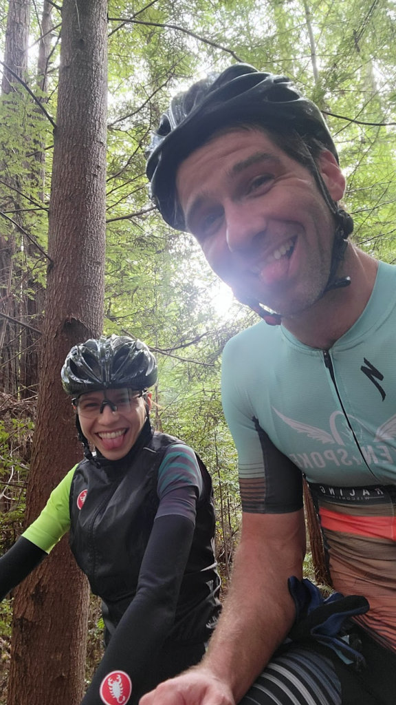 For the next 4 months, they would go on badge-hunting rides with each other on Zwift, getting to know each other better. Nathan had been divorced for 5 years, and says, “I was starting to ask myself ‘What is going on here?’”