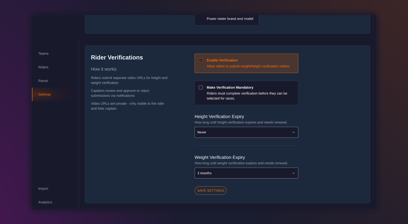 These can be optional or mandatory, and if mandatory, you can select when the verification expires so riders are asked for it again. All verifications go straight to the rider’s captain or to the role in charge of new recruits. As the verifier, you can either approve or reject the riders’ submissions with a note.