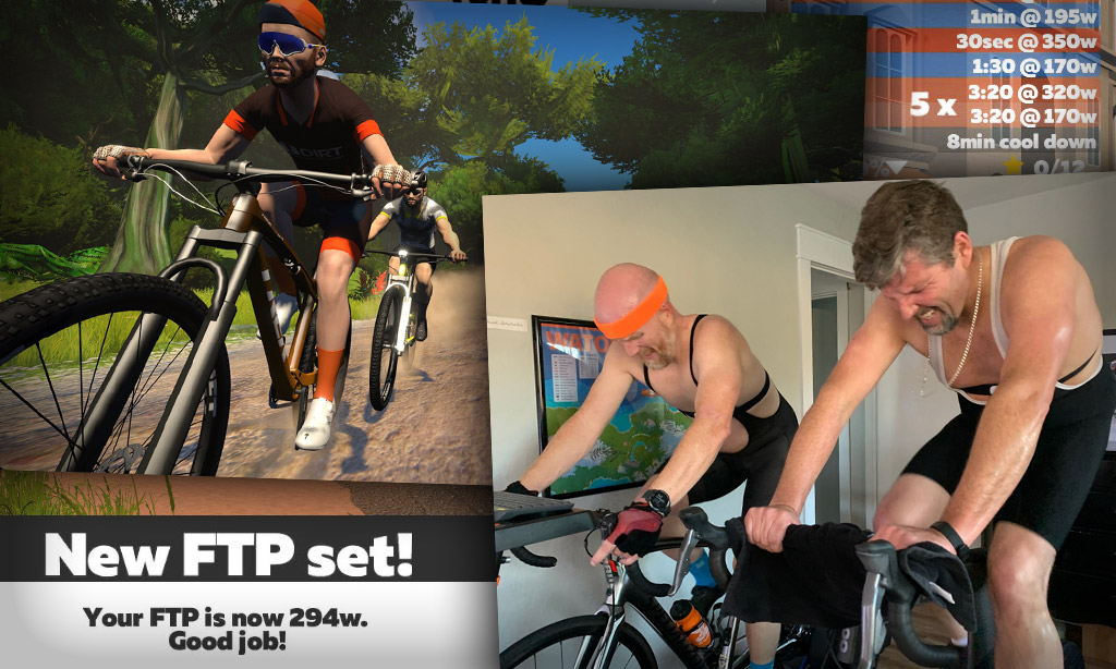 Since we’re halfway through this training block, we figured an FTP test was in order. It was a Sunday, so we invited a couple of local cycling buddies to join us on Zwift while Boone put in his effort on Fuego Flats.