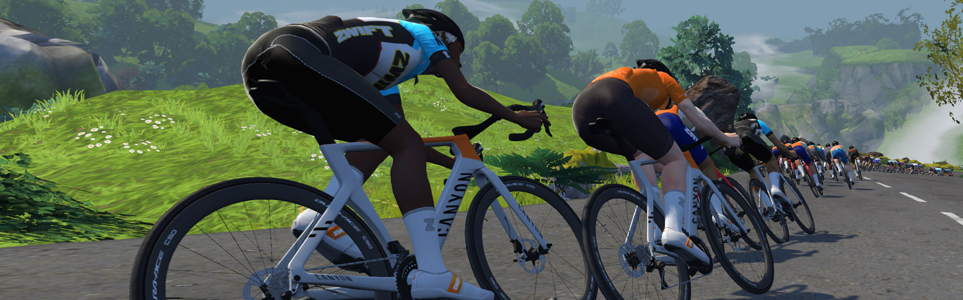 Zwift schedules three different flavors of ZRacing events in order to encourage “Fairer, more competitive racing for everyone.” They each use different racing score ranges for categorization and are titled Advanced, Range 1, and Range 2. Click banners below to see upcoming events for each: