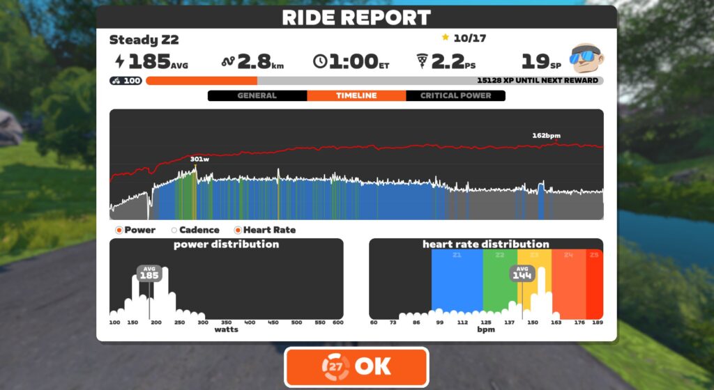 - I sense a boost in VO2 power. Despite not training VO2 in a targeted way, I was able to go outside and do a 410W effort for 3 minutes, which is better than I’ve done in a few years. I also notice myself surviving those tough 3-6 minute climbs in Zwift races.