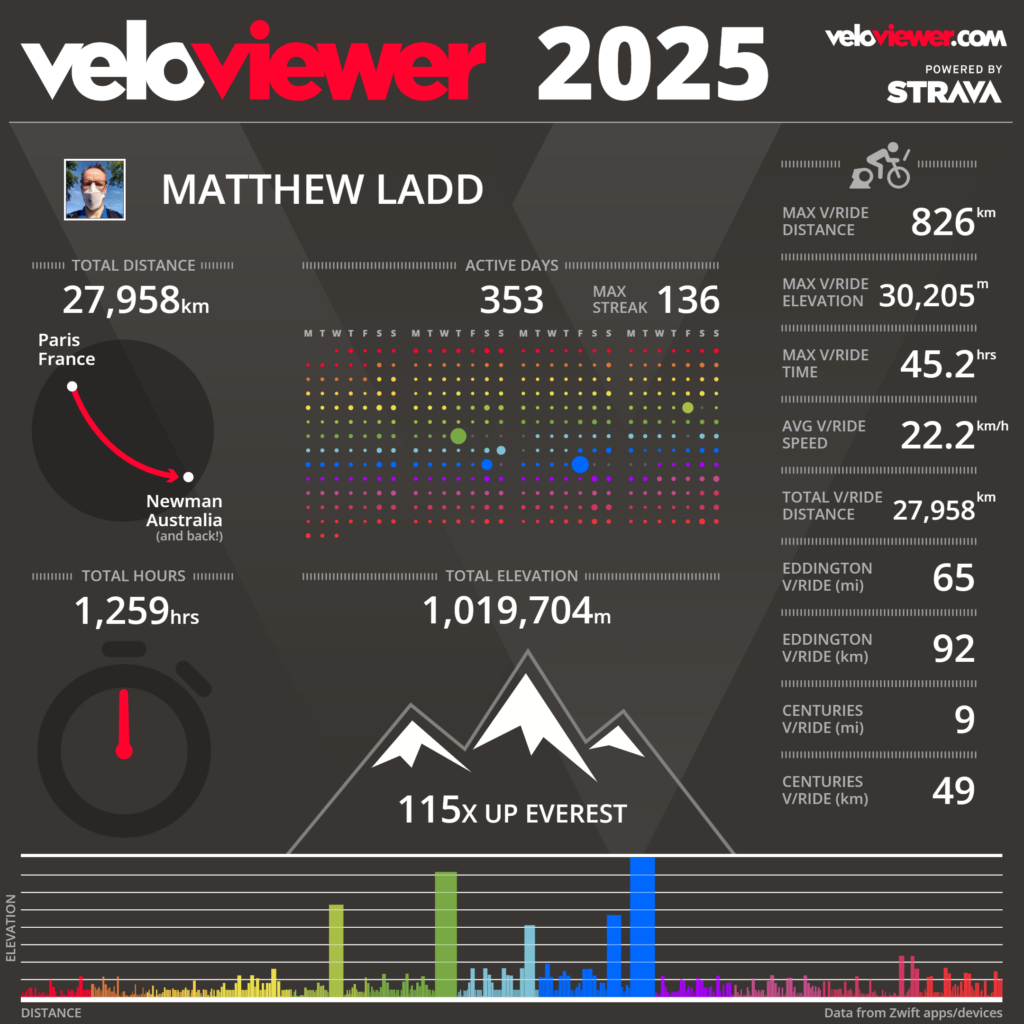 And then there’s Matt Ladd, aka “Mads Matt”, who spent 2025 chasing something very few Zwifters, or cyclists for that matter, will ever attempt, let alone complete: one million vertical meters of climbing in a single year.