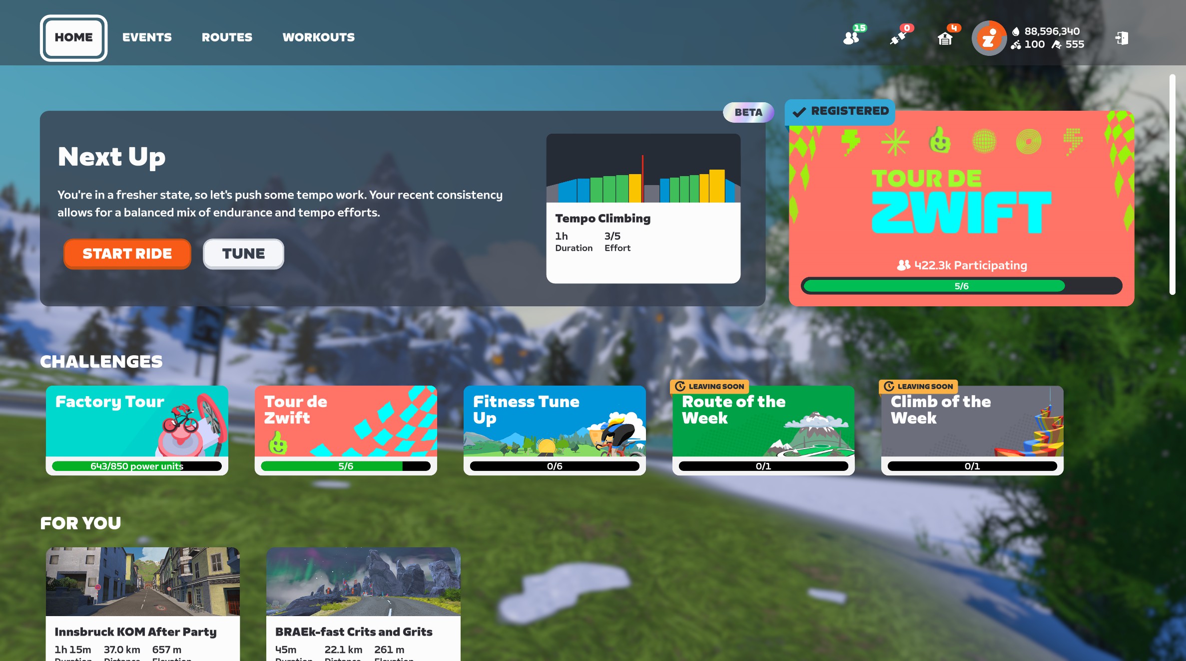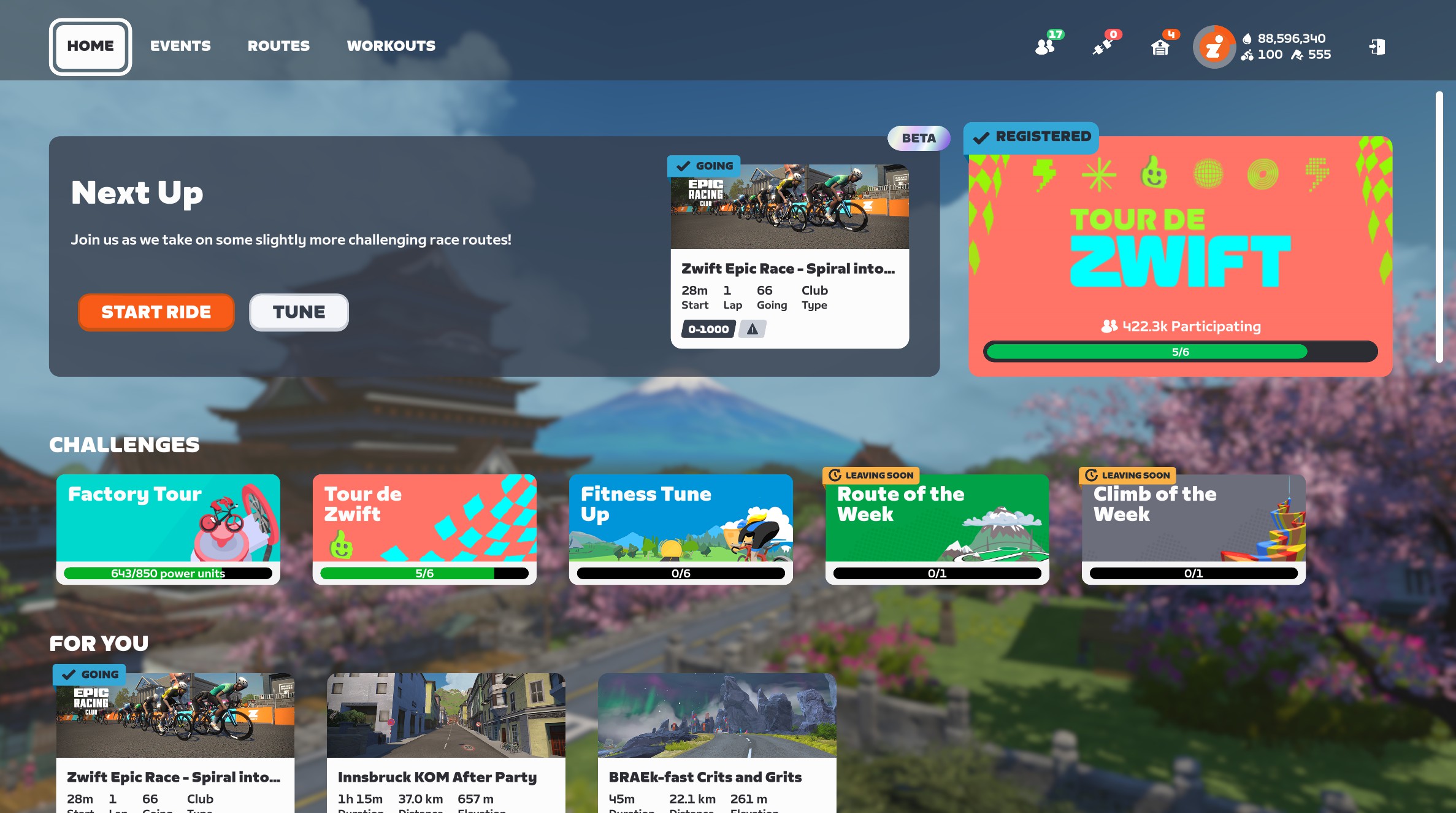 To Zwift’s credit, they’ve improved this portion of Next Up since its initial launch. It’s now recommending Tour de Zwift routes for me, for example – even though the explanation text doesn’t explain this (that’s coming soon).