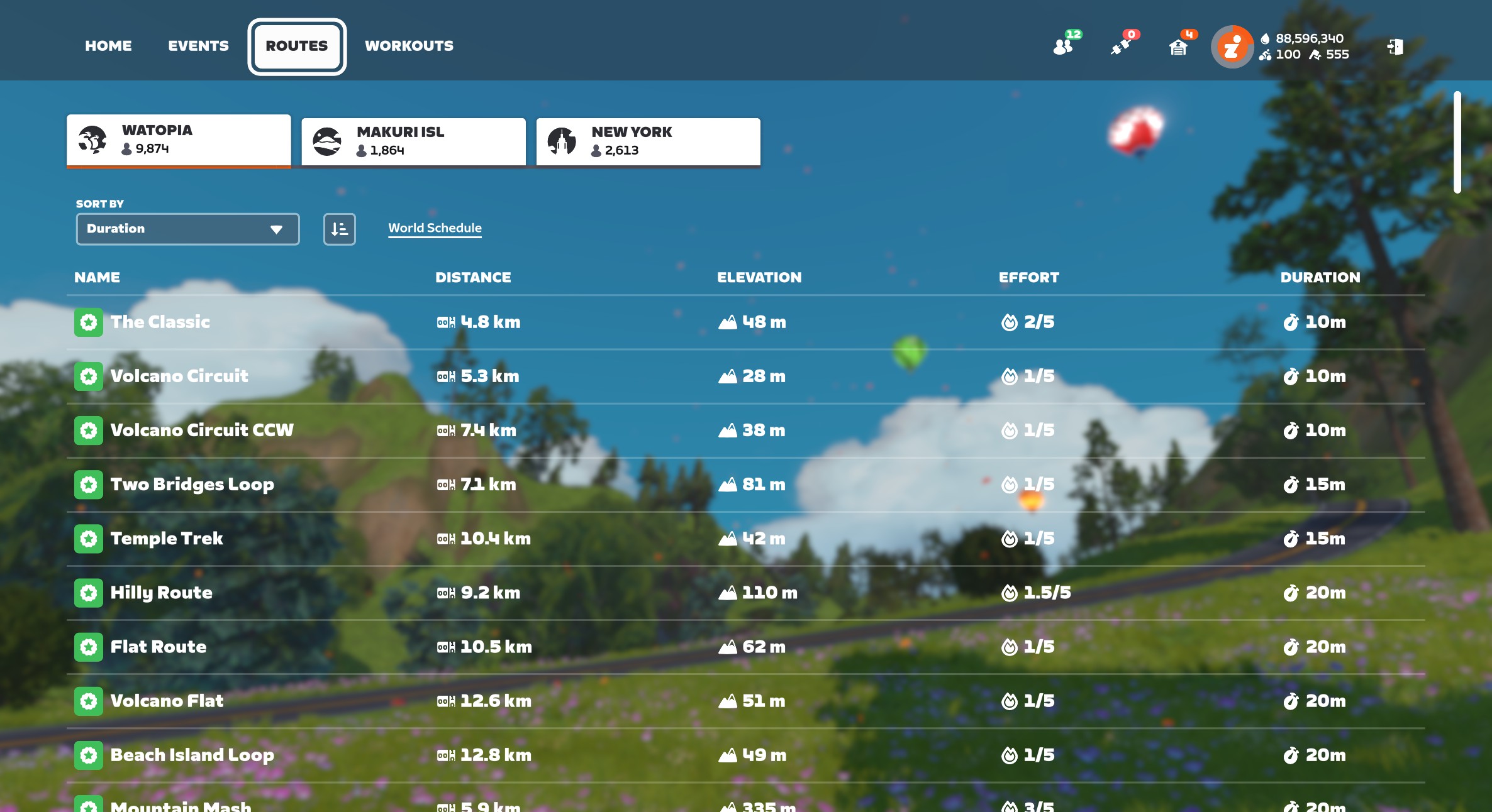 Zwift’s huge library of routes (well over 200 free rideable routes now) can be a bit overwhelming, especially to newer users. Add route badges into the mix, Route of the Week, and the huge variation in length and difficulty of routes, and you can see that a strong route recommendation engine would be a great addition to the game.