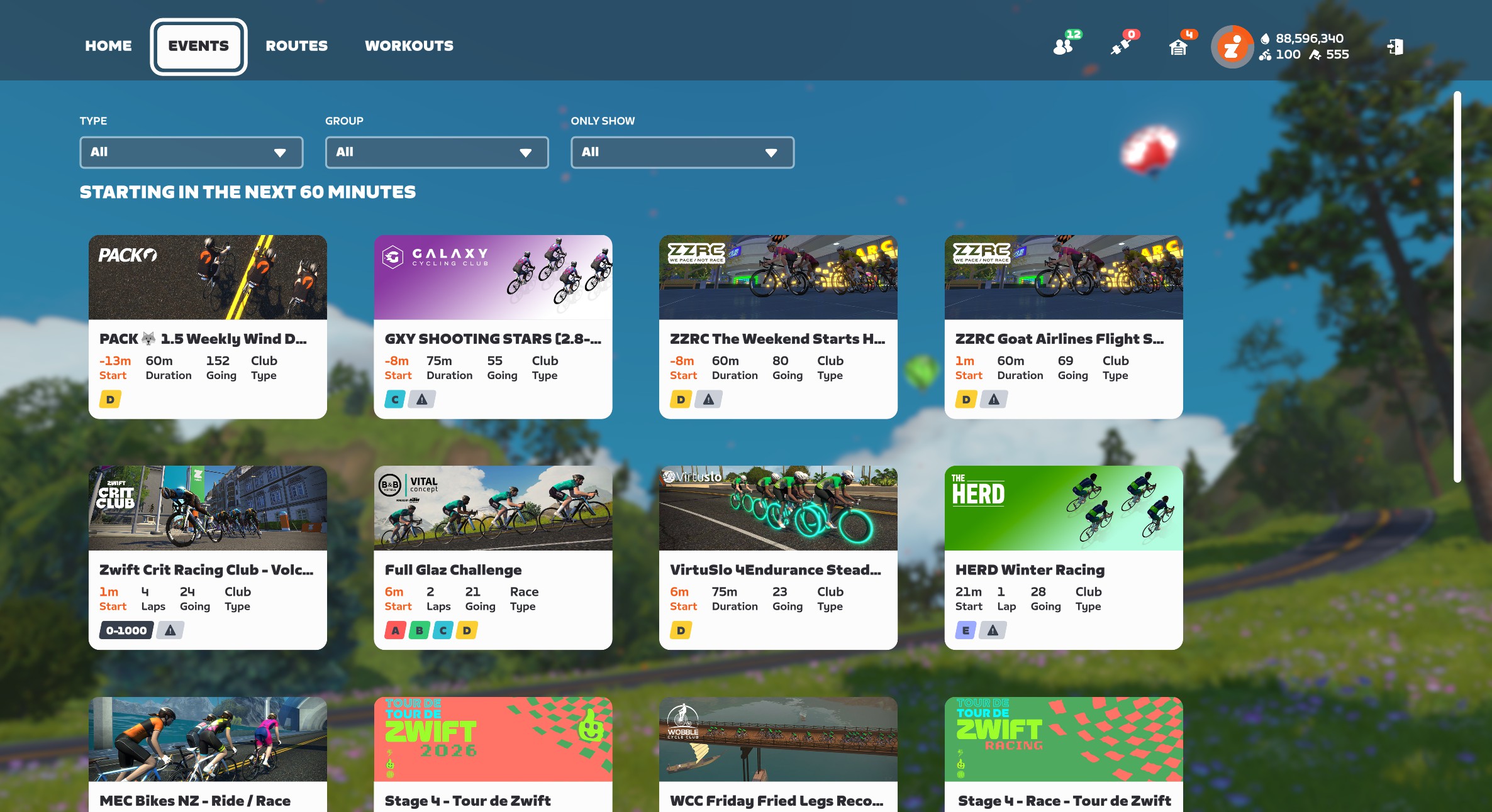 Zwift has always struggled to surface (or let people discover) events that will leave Zwifters coming back for more. Think about it: there’s still no tool in Zwift that says, “Show me the most popular events happening in the next hour” or “I want to do VO2 work in a group, what events are coming up?”