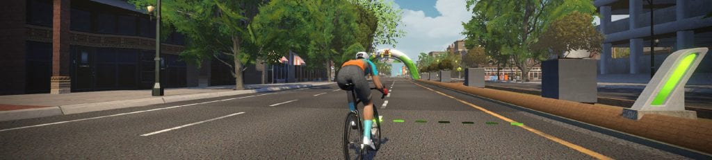 After the lumpy rollercoaster lead-in you’re on a flat circuit that begins and ends at the Monument Avenue sprint banner. This circuit is the reverse version of The Fan Flats circuit.