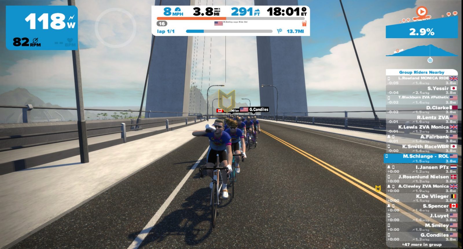 As the weeks went by and we continued to notify the Zwift community of the ride people started adding the ride to their schedules. We were doing this, and others were joining us. Many to support me, others because they felt it was a safe place for them as well to get to the radio tower at their own speed.