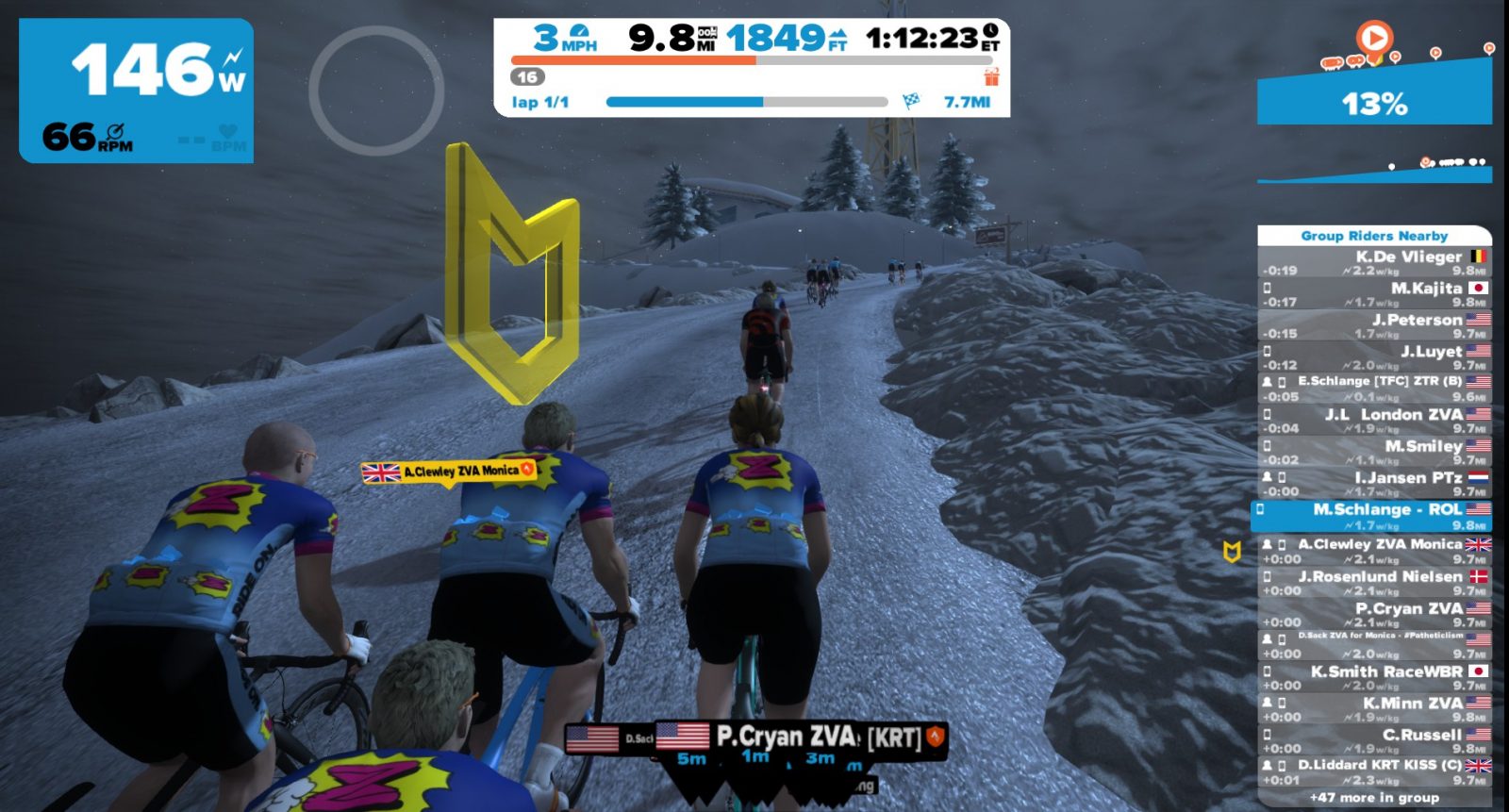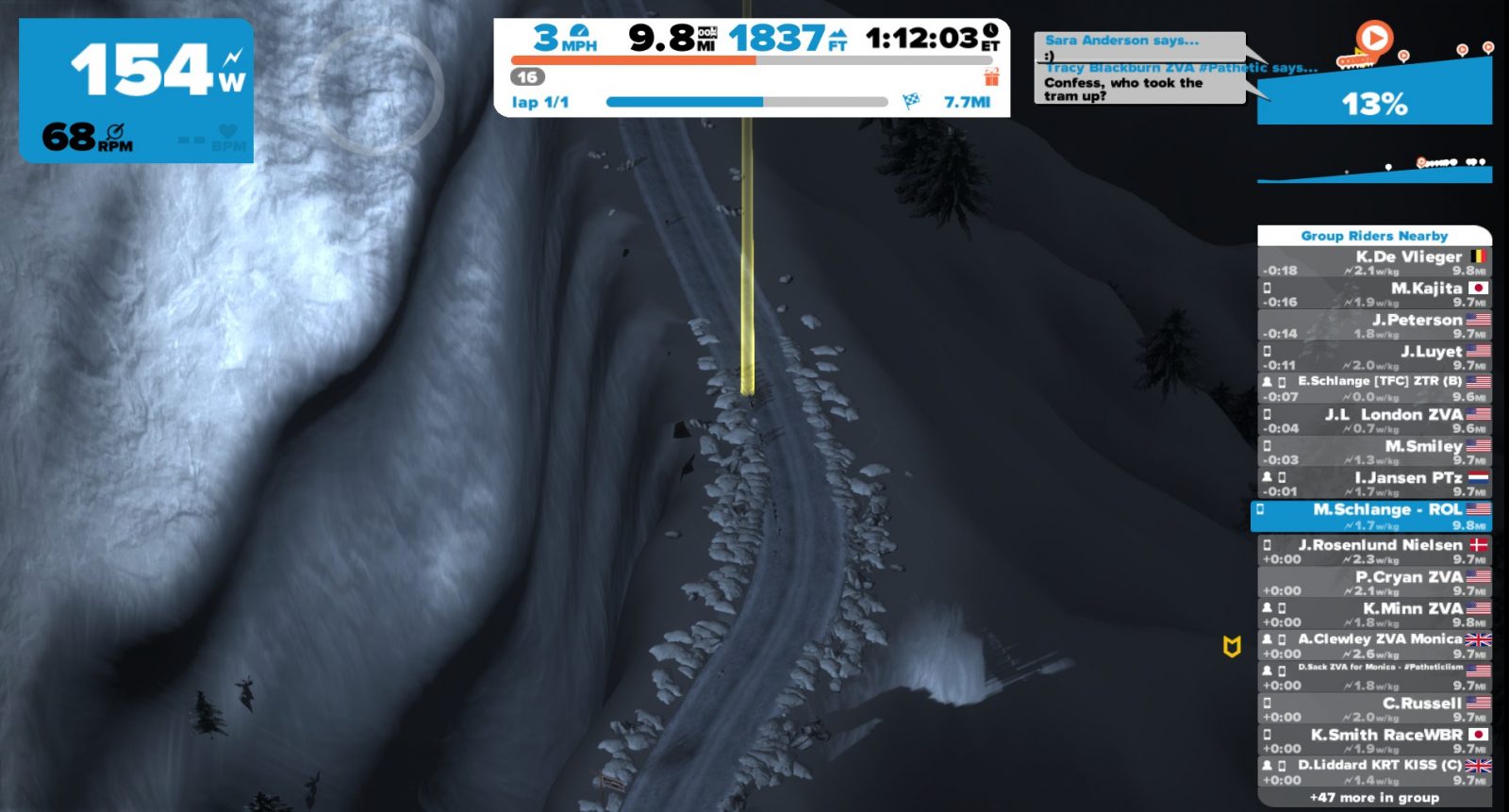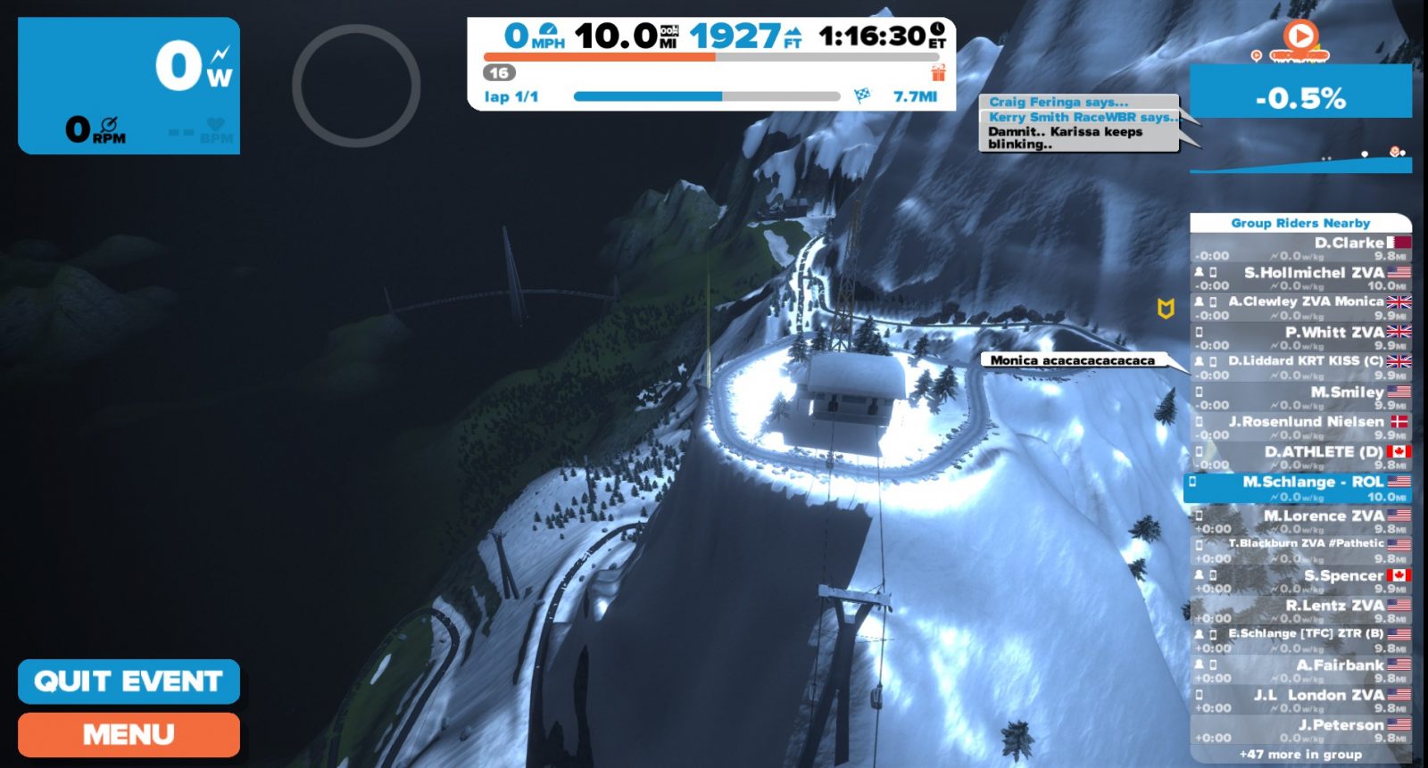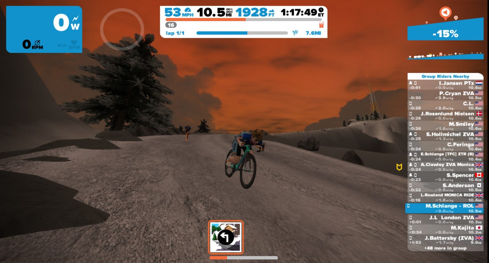 Al Clewley, a gentleman Eric and I only knew from one of the Zwift-specific facebook groups we’re in, asked if he could organize a group ride to help me push myself further… to the Radio Tower. We discussed what that would look like. It would be the slowest ride up the mountain for Eric and Al. It would push me beyond what I thought I could do. Others might join but would need to know this was all about just getting there, not getting there by a certain time. Al was very kind about it. Making sure he wouldn’t break me as he seemed to be just learning how to help someone with depression. I was honest with him and I think it helped us both understand depression a little better. I needed the accountability and motivation to go beyond my own limits, but in a safe place where I felt supported. This ride would do that. I was excited!