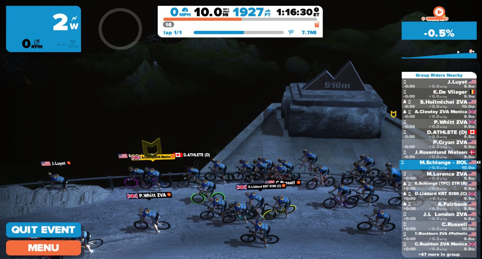 The “Watts up with Power?” ride is likely the slowest group ride you’ll find on Zwift, because it focuses on learning the basics of power based training while riding together on Zwift. Each ride is streamed to Zwift LIVE by ODZ on Facebook, and focuses on teaching specific principles of power-based training. For viewers that are unable to attend live, the teaching is made available for all to review afterwards.