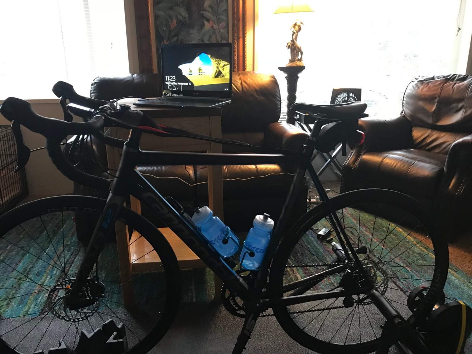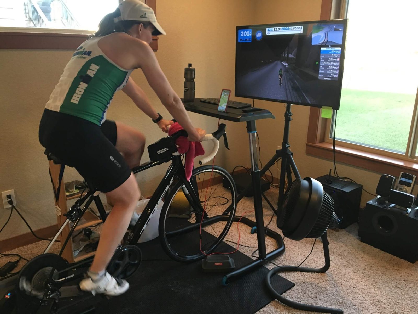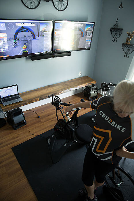 Zwift station, pain cave, “the kitchen”: Zwifters set up in all kinds of locations to get their fix.