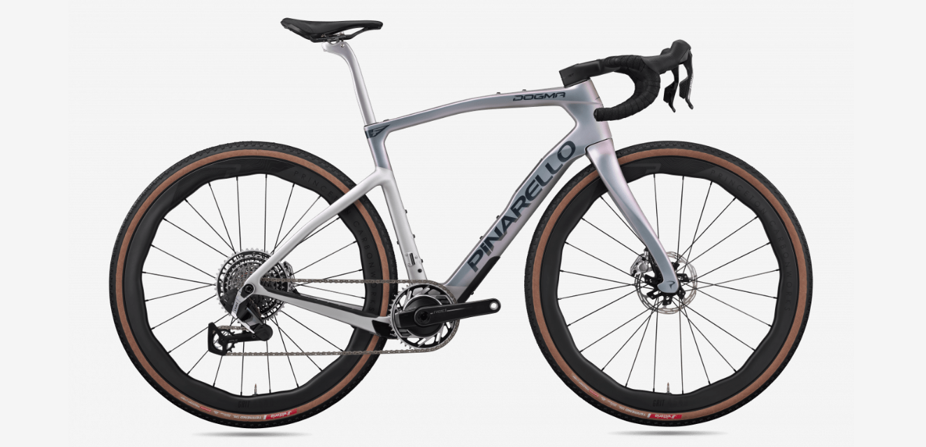 “End of Excuses. The Dogma GR carries that unmistakable Pinarello silhouette into gravel with lightweight carbon and race-tuned stiffness. It responds instantly when you surge and feels laser-precise at pace. Bold lines. Serious intent.”