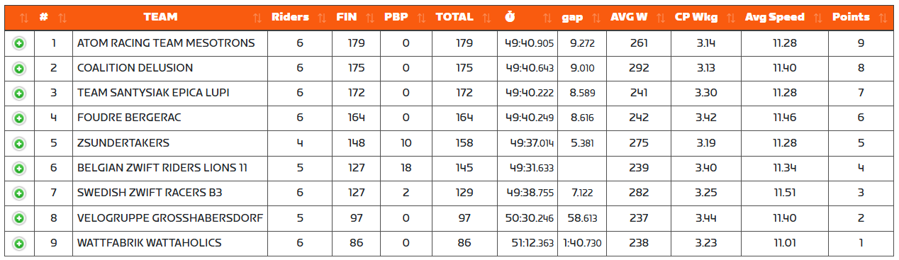 We lost to ART by only 4 points. Such a narrow margin! If two of our riders had just finished 2-3 places higher, we could have taken the win. But hindsight is 20/20.