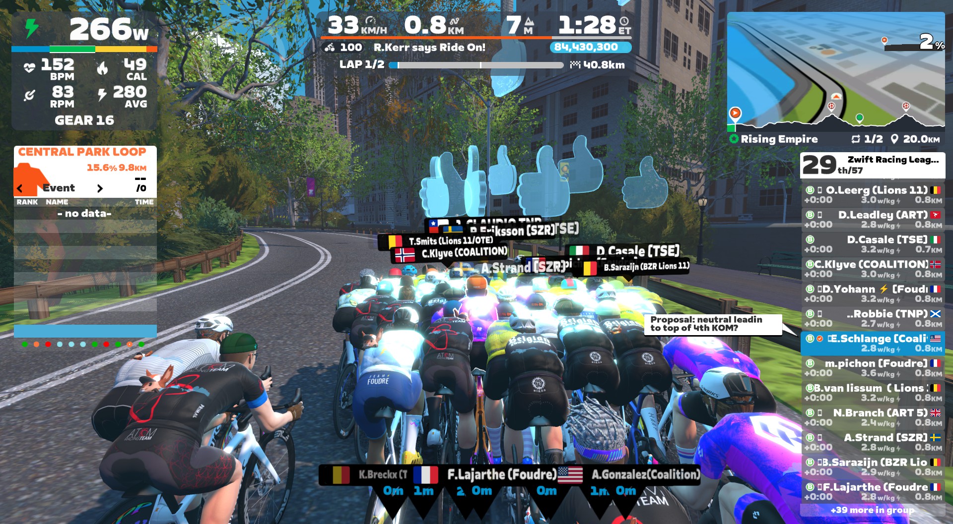 We basically decided everyone would race their own race, battling to stay in the furthest forward group possible, because ZRL’s points structure is such that everyone has an incentive to get across the line ahead of others on every points segment.