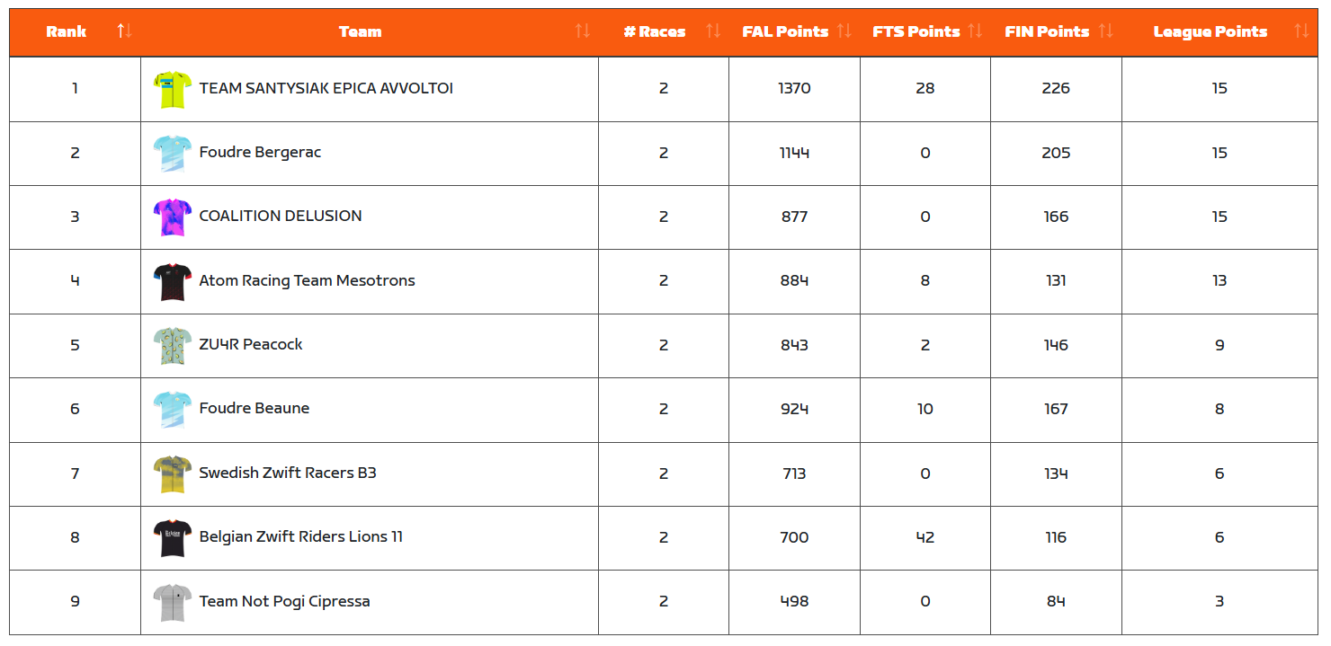 It may be too early to say, but it looks like there are clearly 4 leading teams in this division. While we won last round, this round will be much more difficult, with three races featuring significant key climbs.