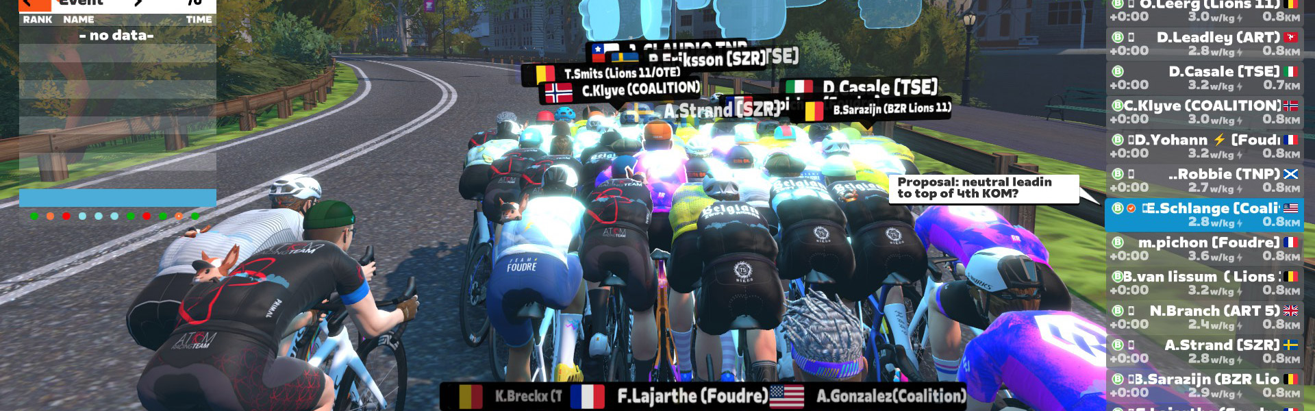 We basically decided everyone would race their own race, battling to stay in the furthest forward group possible, because ZRL’s points structure is such that everyone has an incentive to get across the line ahead of others on every points segment.