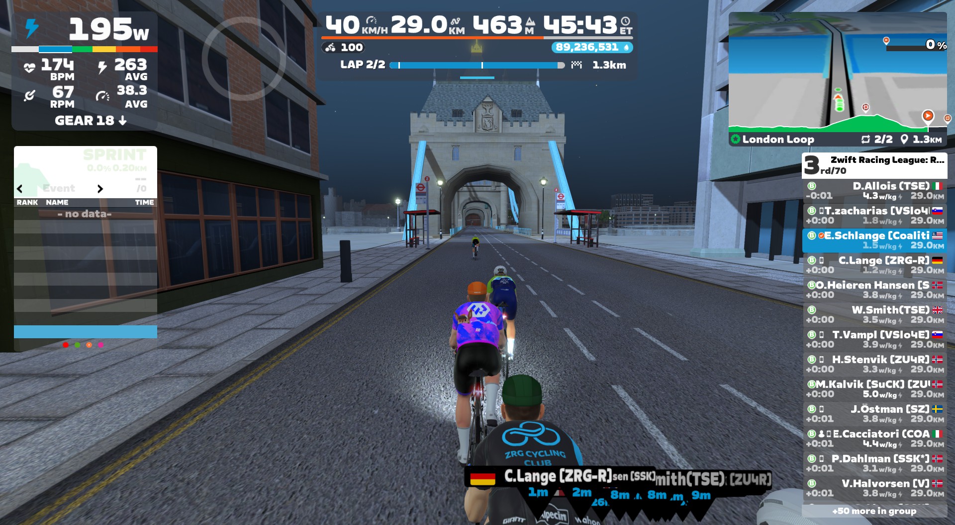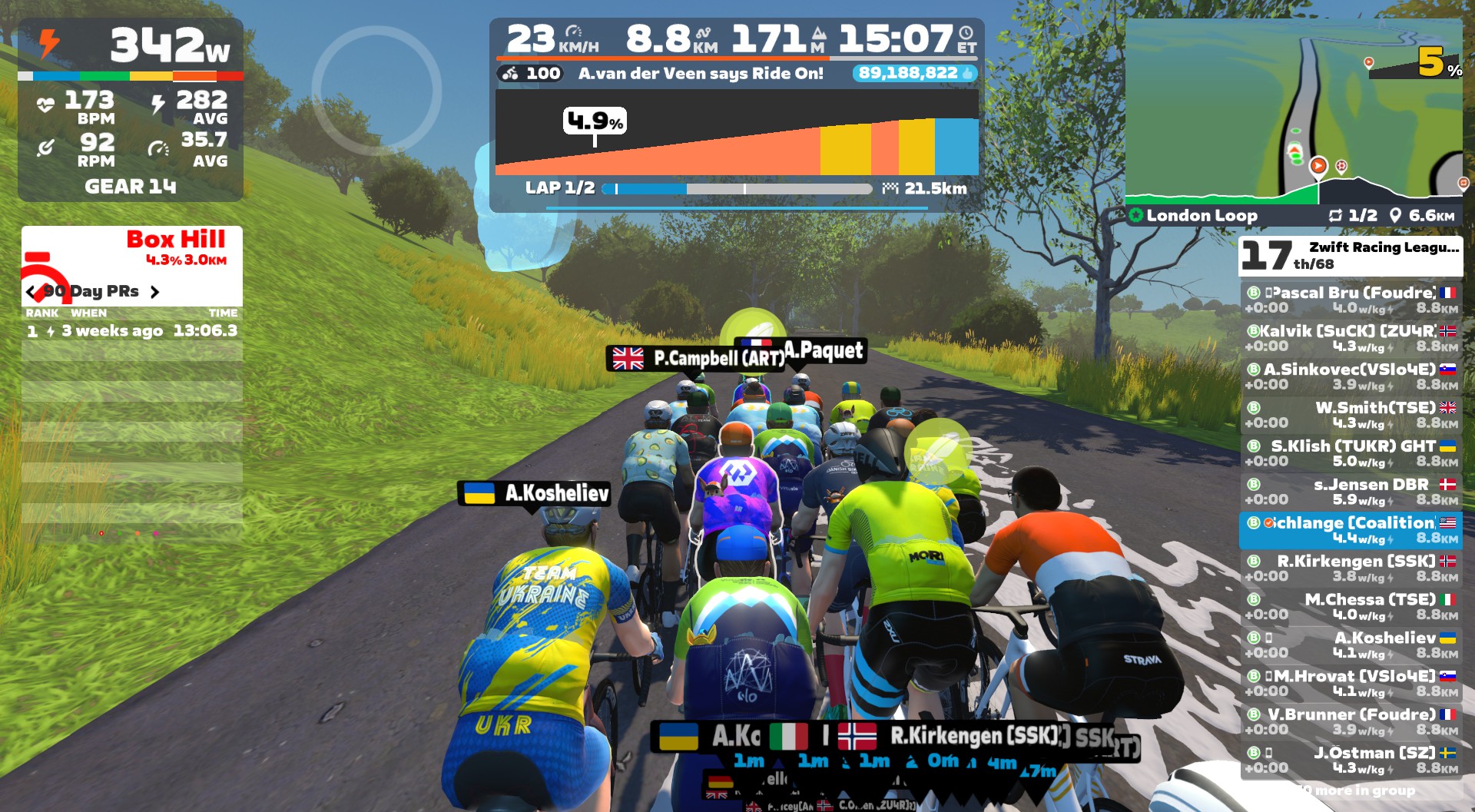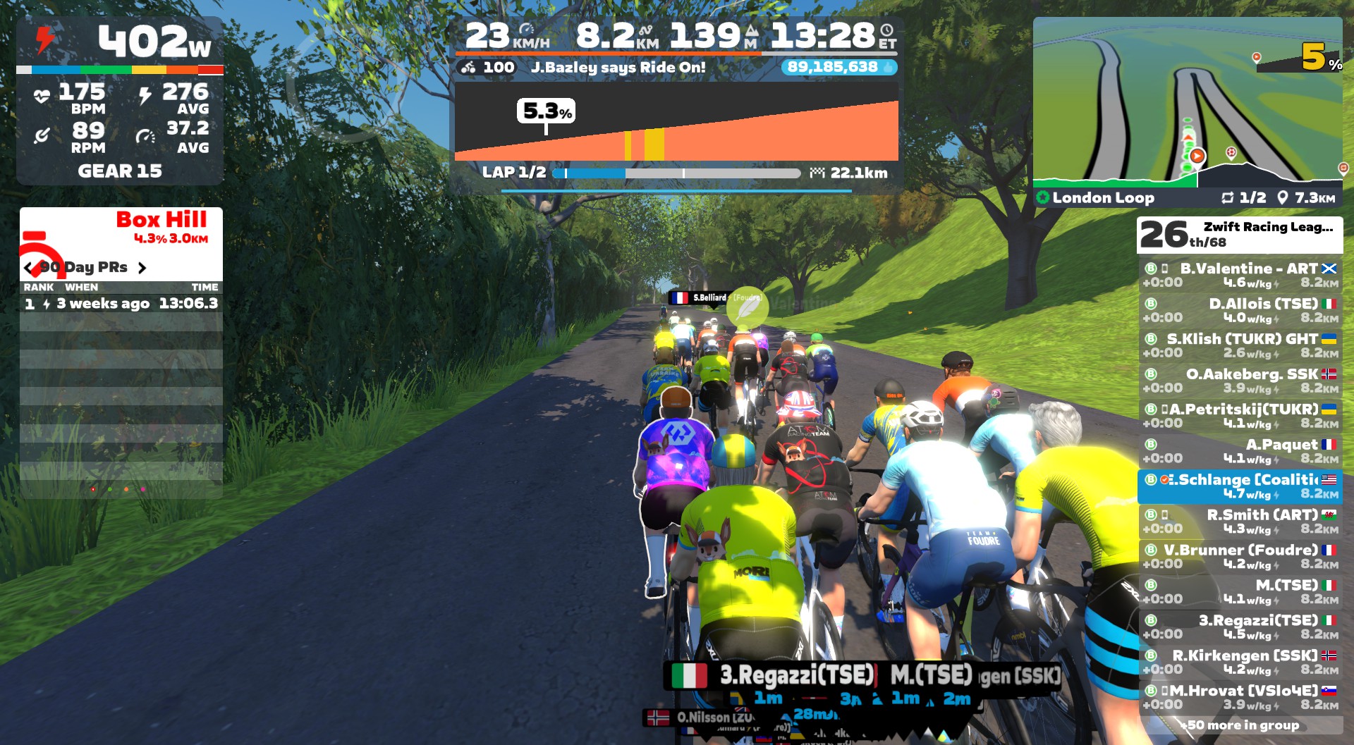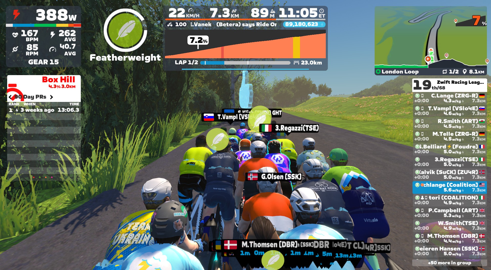 Tuesday was the last race of Zwift Racing League Round 3, and we were in London for a two-lapper of the classic London Loop. That meant 30km of racing but, more importantly, two trips up Box Hill! This was going to hurt…