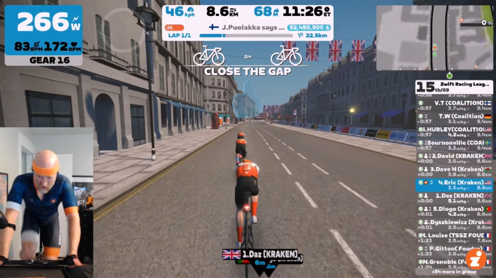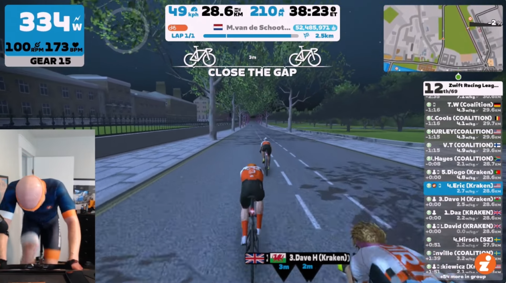 With 1.5km left, Dave Husbo fell off the back after one last mighty pull. Four riders left. David Mac and Daz were still going strong, while Diogo and I were holding on. We went all in for the final 500m, crossing the line at 41:49. 39 seconds behind SZ, 18 seconds behind Coalition.