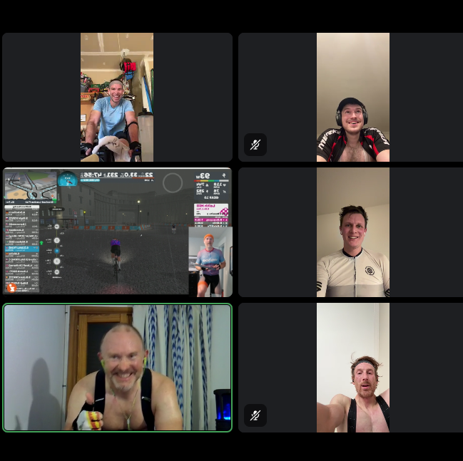 Eventually, team captain Neil got on the front (chapeau!) then suddenly, Andrew appeared again, 3 seconds up the road. What a stud! (Anyone who’s ever had an Internet dropout on Zwift knows how hard it is to stay with the other riders when they disappear from the screen and you lose their draft and position. He must have pushed hard to keep his speed higher than ours.)