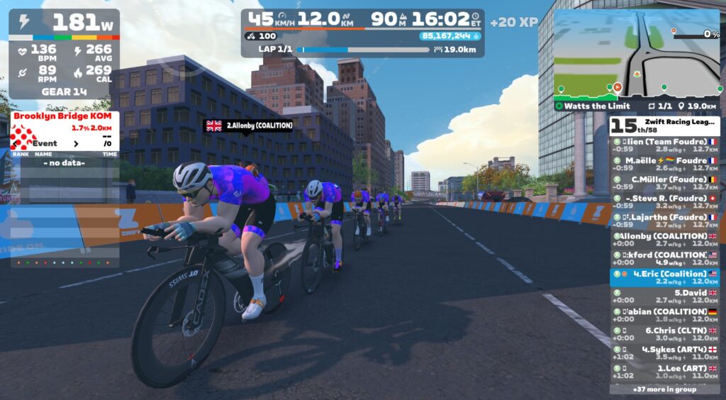 My teammates were quite animated in Discord, surprised by the high speeds and churn caused by the downramp. It was pandemonium, but I hammered to get back in the wheels – you have to react quickly in these situations – and we slid back into formation.