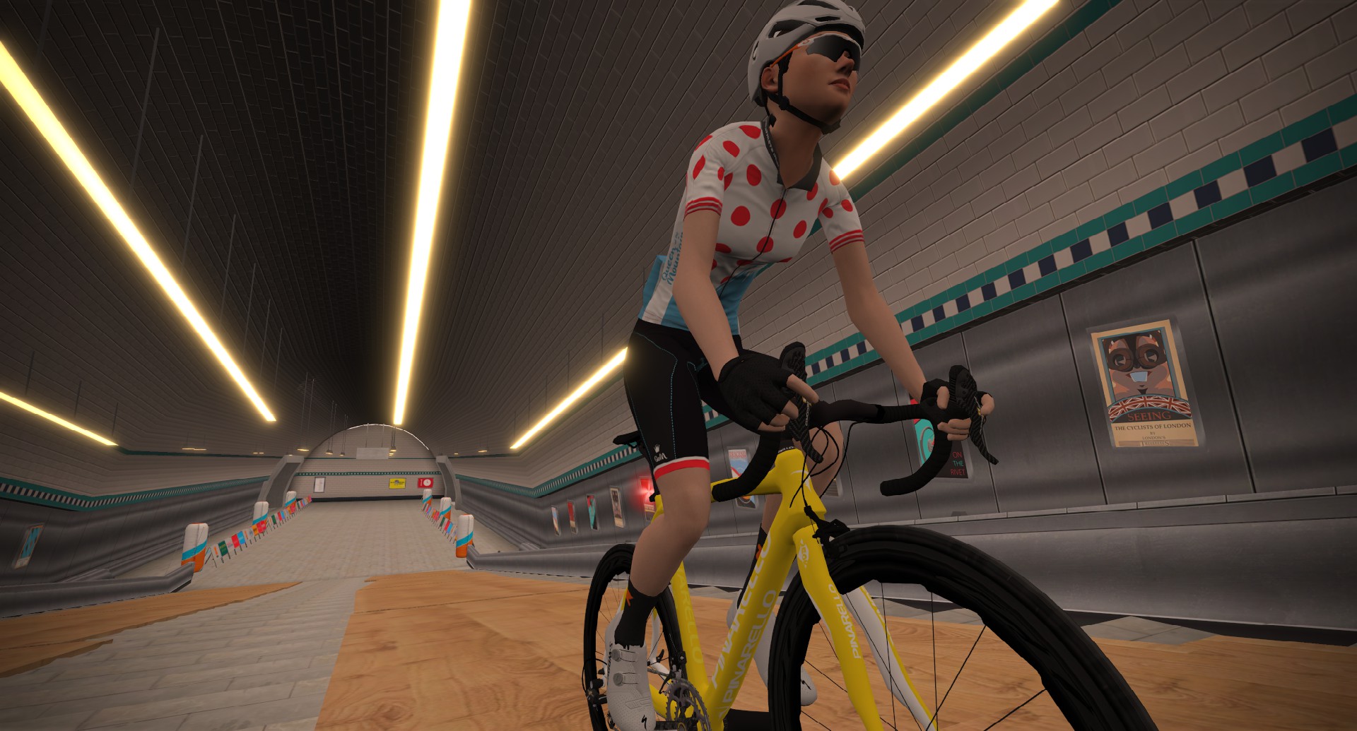 From the top of Box Hill, you’ll descend the other side (called Fox Hill here on Zwift), then enter another Underground station to be taken back into London for the last bit of the circuit, which takes you across Tower Bridge.