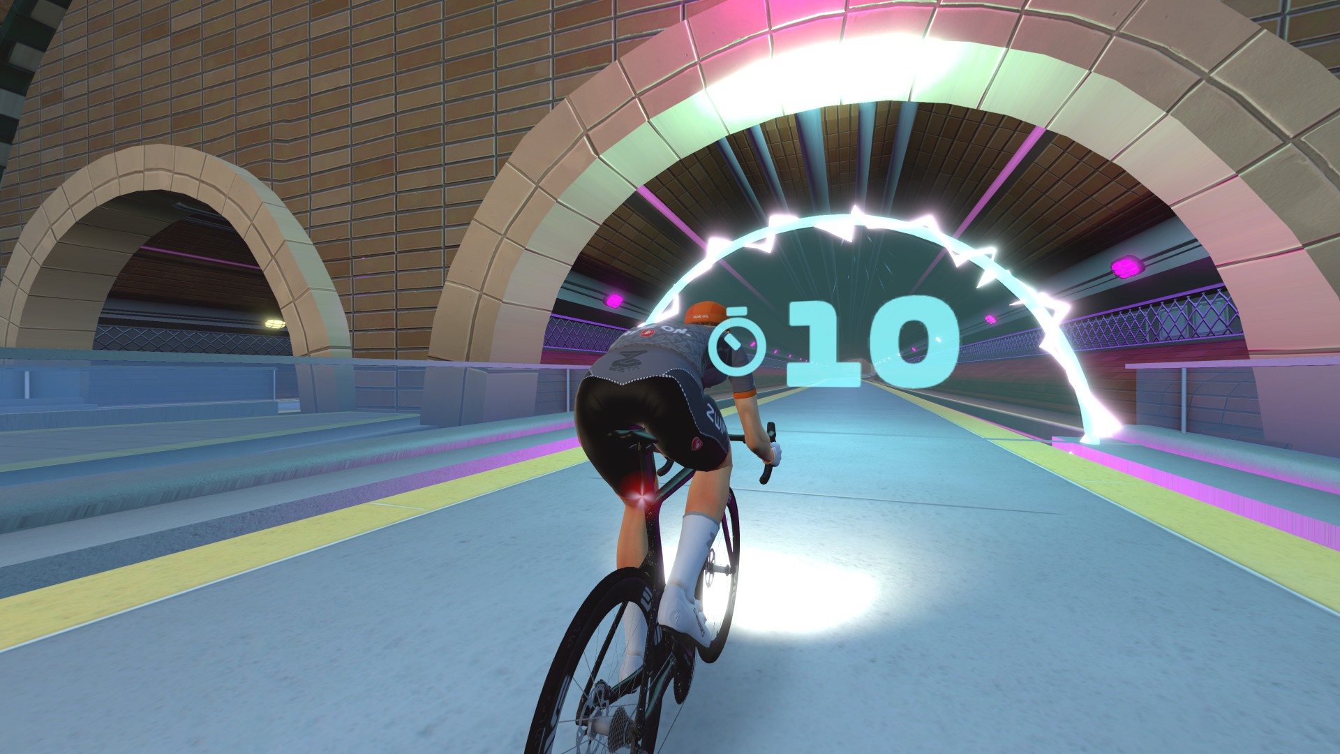 Beginning with a short lead-in at Times Square, you’ll ride through the Times Square Circuit arch then head south to the City Hall Station subway, where you can take on a 10-second Power Segment if you’d like. Then climb out of that subway and head over the East River via the Manhattan Bridge, which includes an uphill sprint to the bridge’s center.