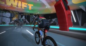 Re-enter City Hall Station, hit another 10-second Power Segment, then climb out and ride through the center of Zwift’s futuristic Times Square before entering another subway which features a 20-second Power Segment in this direction.