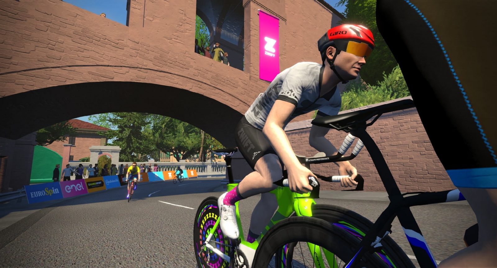 The Bologna “Time Trial Lap” route is a replica of the Giro d’Italia prologue TT stage raced on May 11, 2019, so if you aren’t half-blind from an all-out effort you can enjoy some of the landmarks painstakingly recreated by Zwift’s artists.