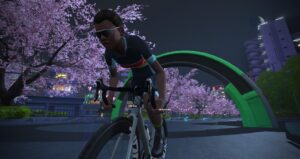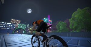 Returning to Neokyo, you’ll turn left and take on the twisty bricks of the Castle Park Sprint Reverse before heading up to the Rooftop KOM, our final climb of the day.