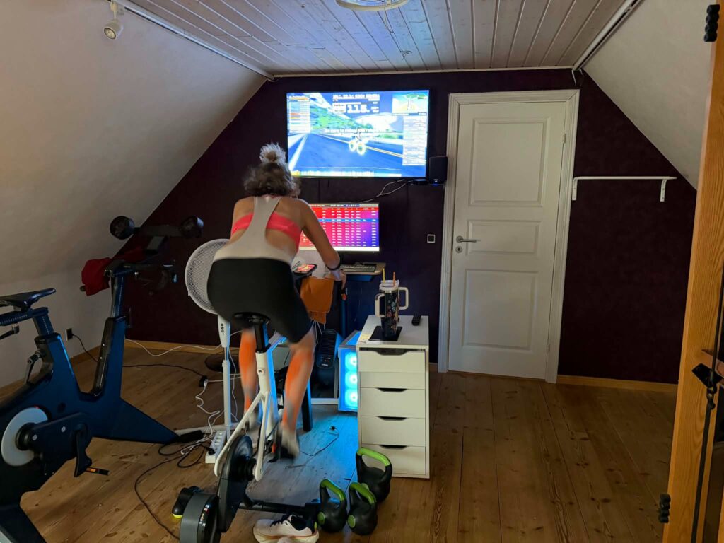 She had started doing structured workouts on Zwift and was getting seriously strong. At the time Torben was riding on Rouvy, mostly just cruising around enjoying the scenery and pretending he was training.