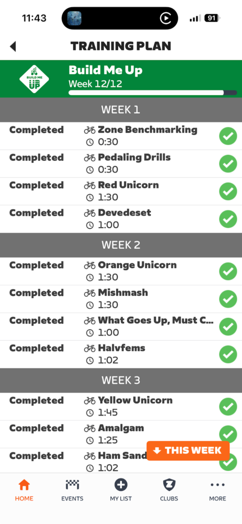 That’s where structured training became incredibly important. Especially the harder Zwift workouts. “Programs like Build Me Up gave me something I hadn’t felt for a long time: real drive and purpose. Hard training became my outlet.”