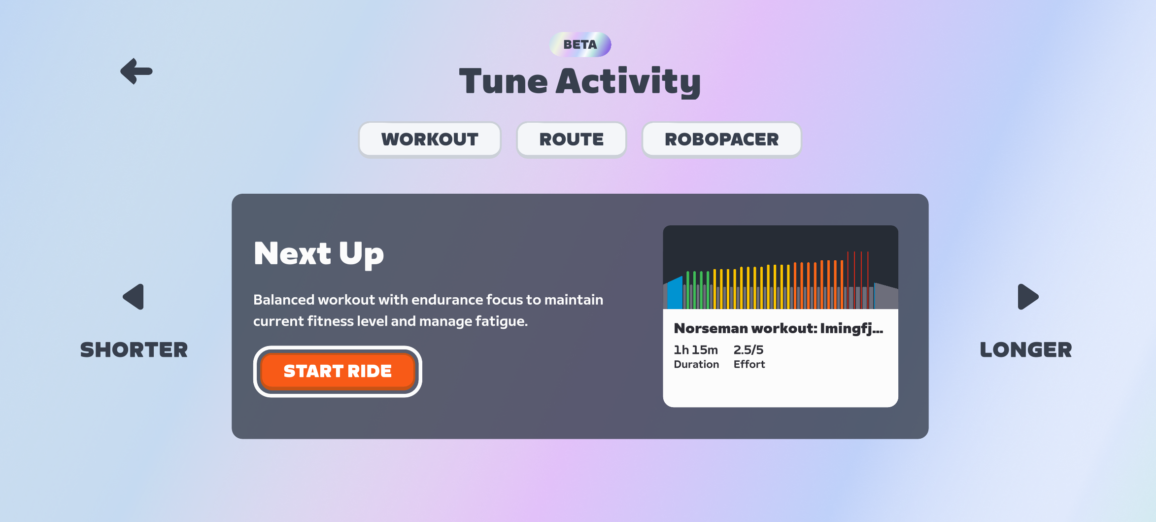 How does it all work? The Personalized Recommendations engine looks at your Zwift activities as well as any outdoor rides if you’ve connected your Garmin, Wahoo, or Karoo account. It then recommends a session for the day based on your habits, fitness, and freshness. These recommendations can be made shorter or longer, and you can choose between a workout, a route, and a RoboPacer. (Zwift tells me event recommendations will come in time.)