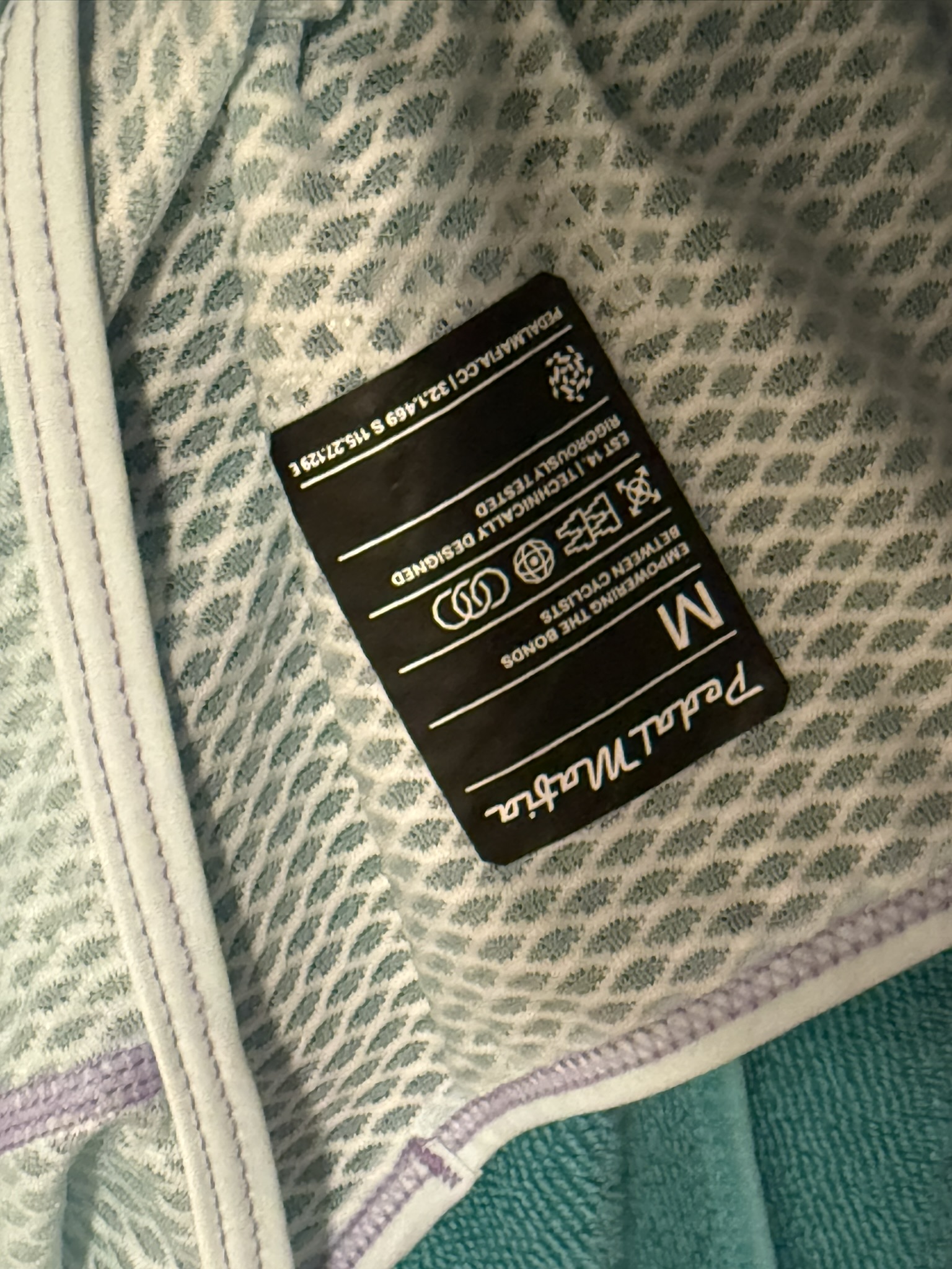 Leg length on Pedal Mafia bibs tends to be on the longer side, as this “pro look” is the trend in today’s kits. I don’t particularly love super-long legs, as they aren’t helpful for indoor riding. That said, I ordered the medium bibs, which fit great on my frame.