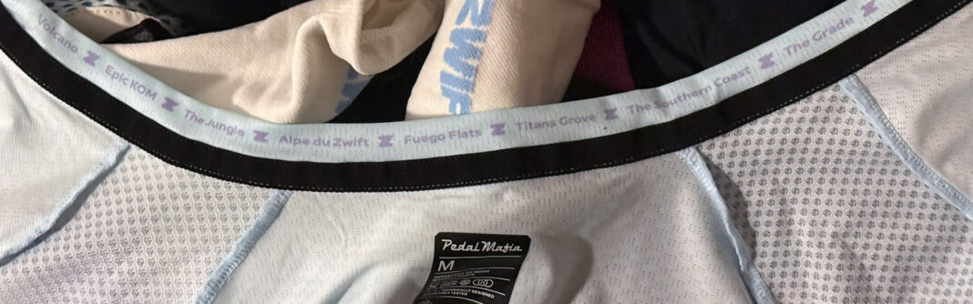In my experience, it takes a lot of riding to wear out a jersey, unless it’s a super-light one made specifically for indoor riding or hot weather. All of my Pedal Mafia Core jerseys have held up well with no tears from washing or frayed stitching, so I expect the Watopia Essentials jersey to do the same.
