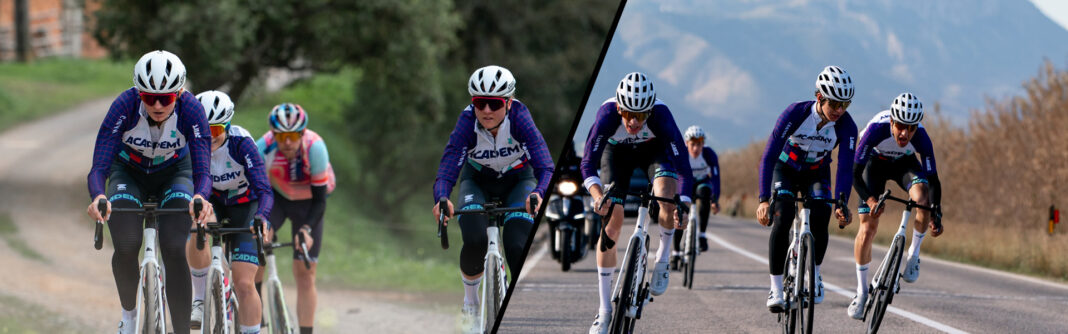 Emily and Noah set themselves apart from more than 100,000 Zwifters who participated in the 2024 Zwift Academy competition. They were among the eight finalists invited to the respective team camps which hosted the finals — the four women joined CANYON//SRAM zondacrypto in the Algarve, Portugal and the four men linked up with Alpecin-Deceuninck in Denia, Spain.