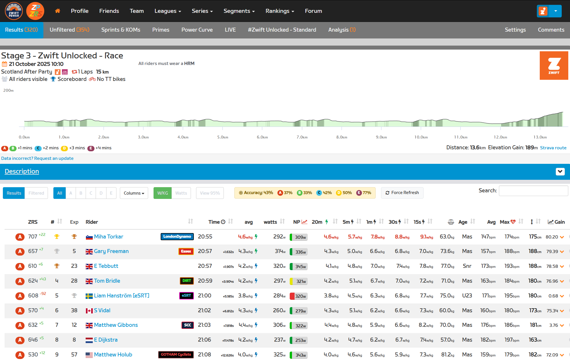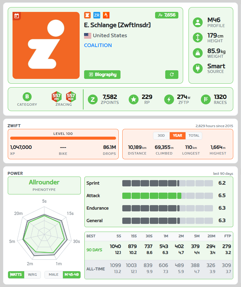 - ZPoints and Ranking Points (metrics from ZwiftPower)